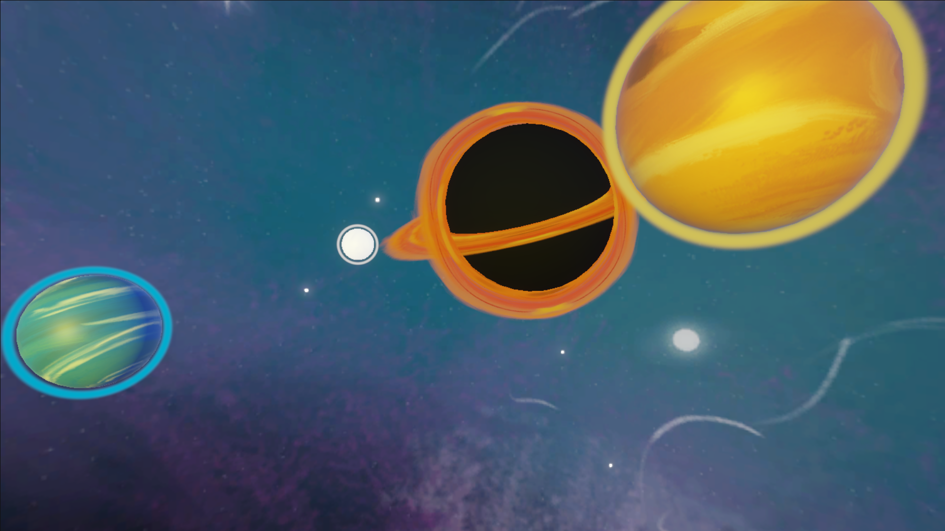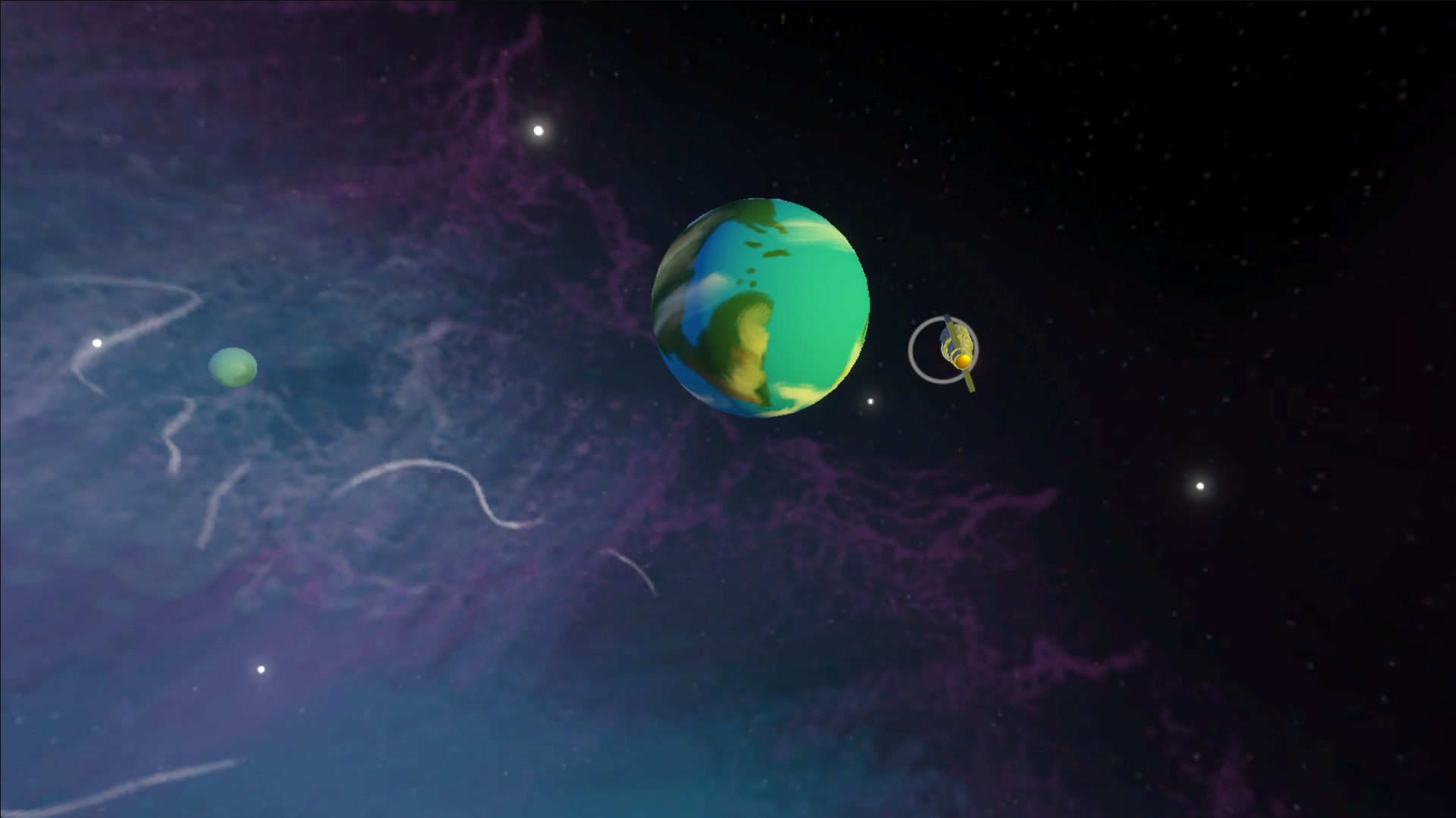 Sonar System is a space-themed sound toy where you interact with planets to play music. Turn around and click the space objects to activate their parts. Have fun constructing a song your way!